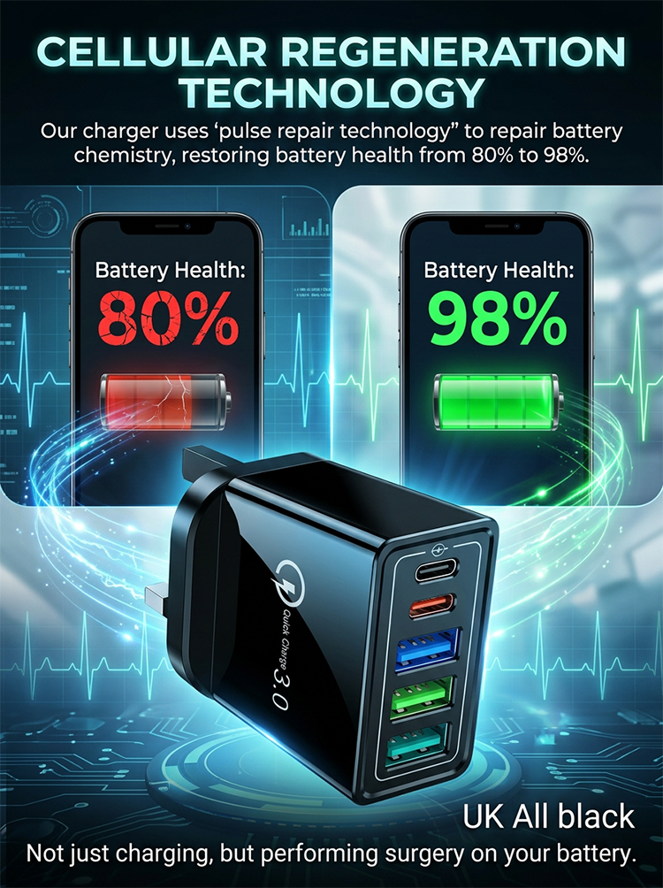 Four-Port Travel Charger for Extended Phone Battery Life